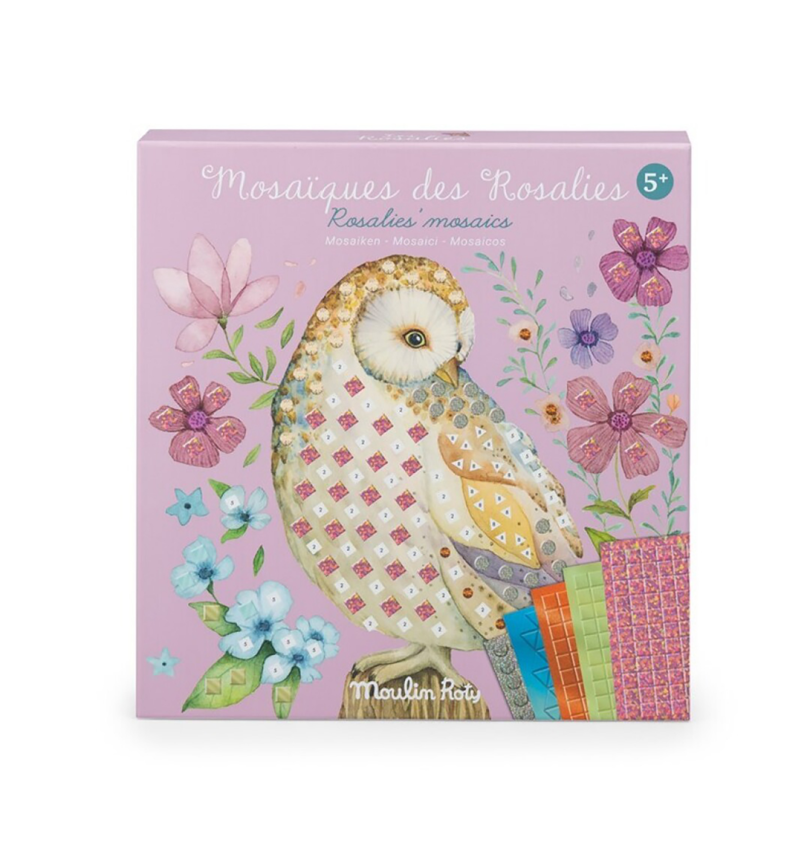La caja de mosaicos Rosalies de Moulin Roty es una actividad creativa perfecta para que los niños desarrollen su imaginación mientras crean preciosas composiciones.
