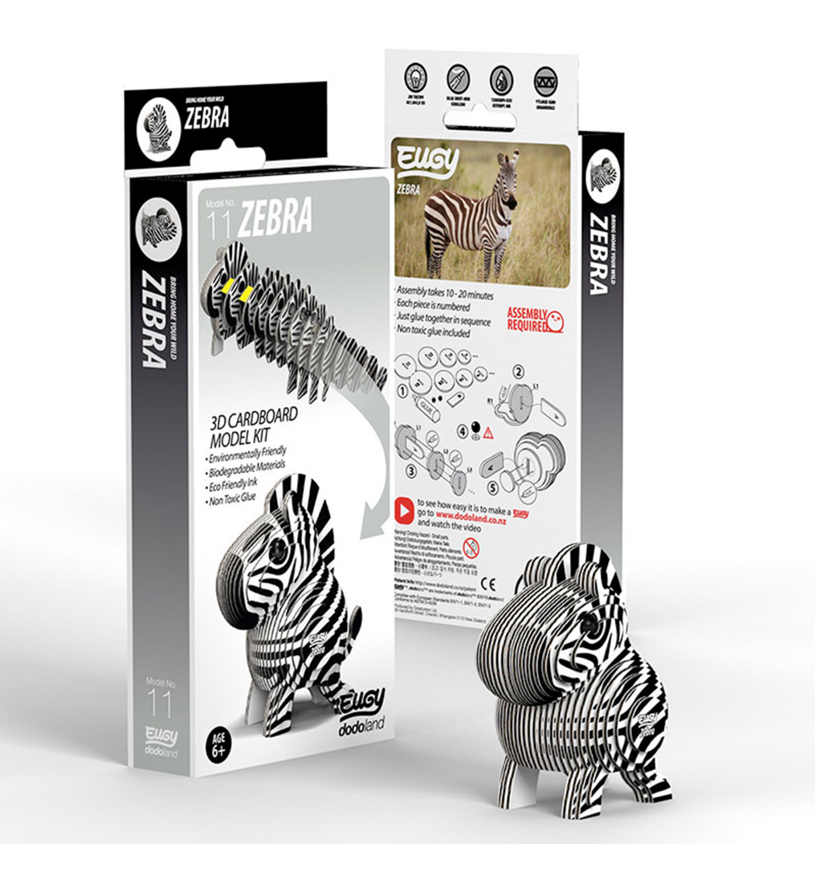 Un puzzle 3D de cartón para que los peques lo monten y luego jueguen con él o lo tengan de decoración. Se trata de juntar las piezas, que ya vienen numeradas, e ir pegándolas. De cartón 100% reciclado y a base de tinta natural hecha de arroz. Tiempo de montaje: 10-20 minutos. A partir de 6 años.