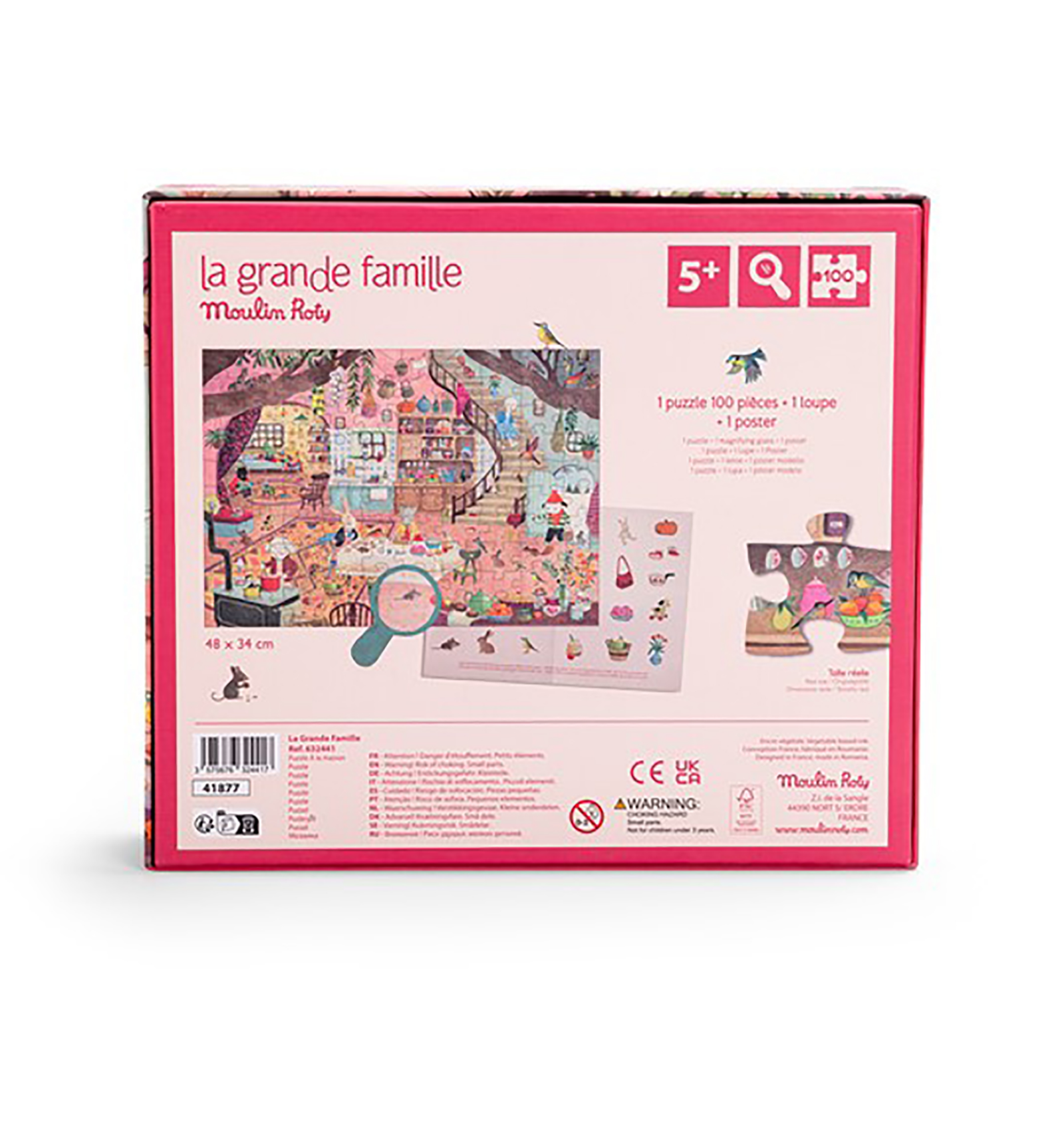 Al acabar el puzzle no termina el juego! Con la lupa que encontrarás en el interior tendrás que ir buscando donde están escondidos los diferentes personajes y objetos de la parte trasera de la ilustración.