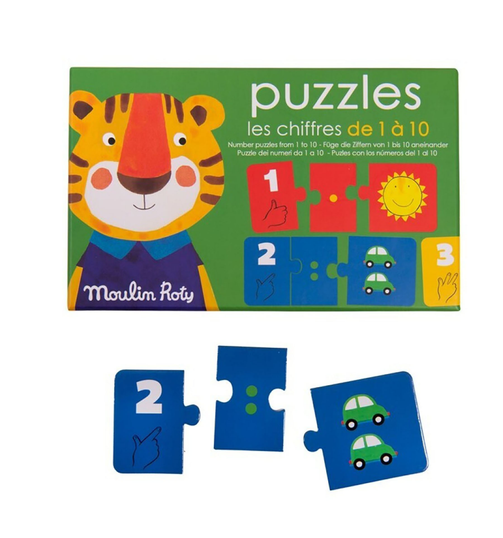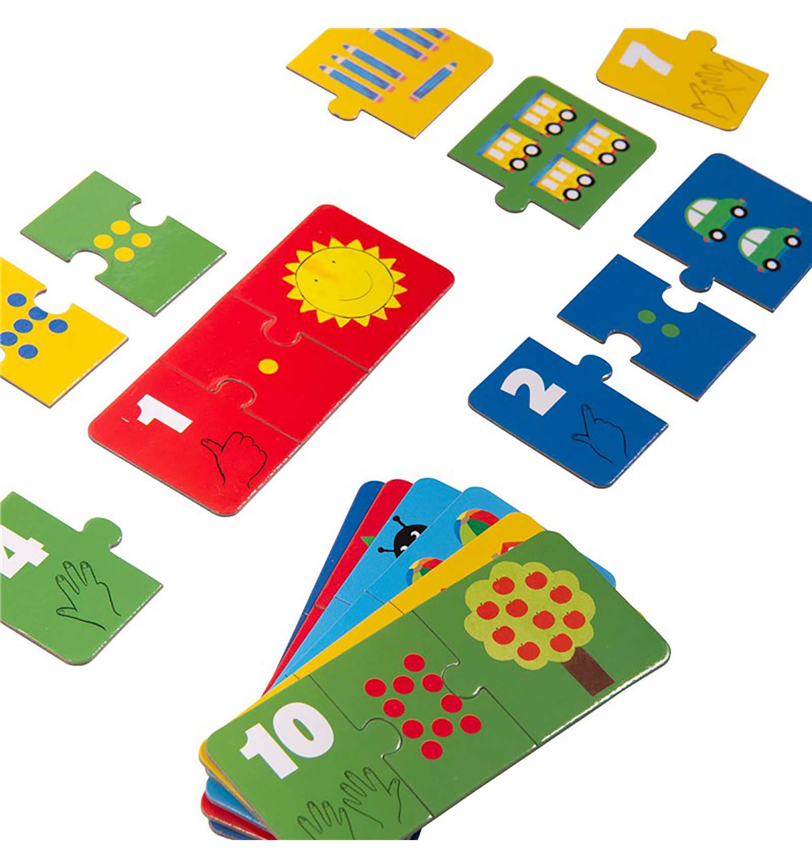 ¡Descubre la diversión de aprender los números del 1 al 10 con este conjunto de 10 puzzles! Cada uno presenta un número, puntos y una imagen para asociar y reconstruir un puzzle de 3 piezas. Ideal para que los más pequeños desarrollen habilidades numéricas mientras se divierten.