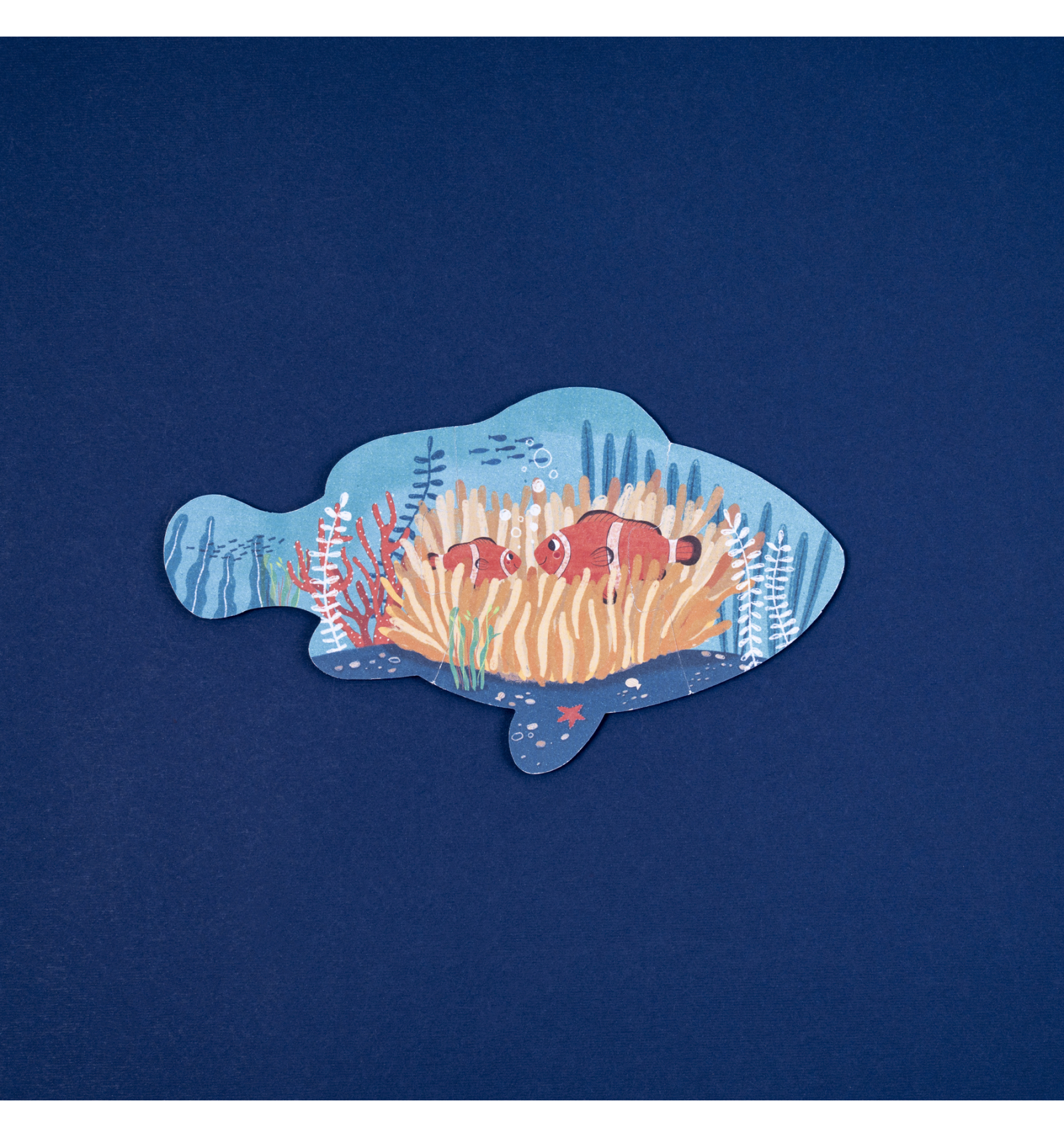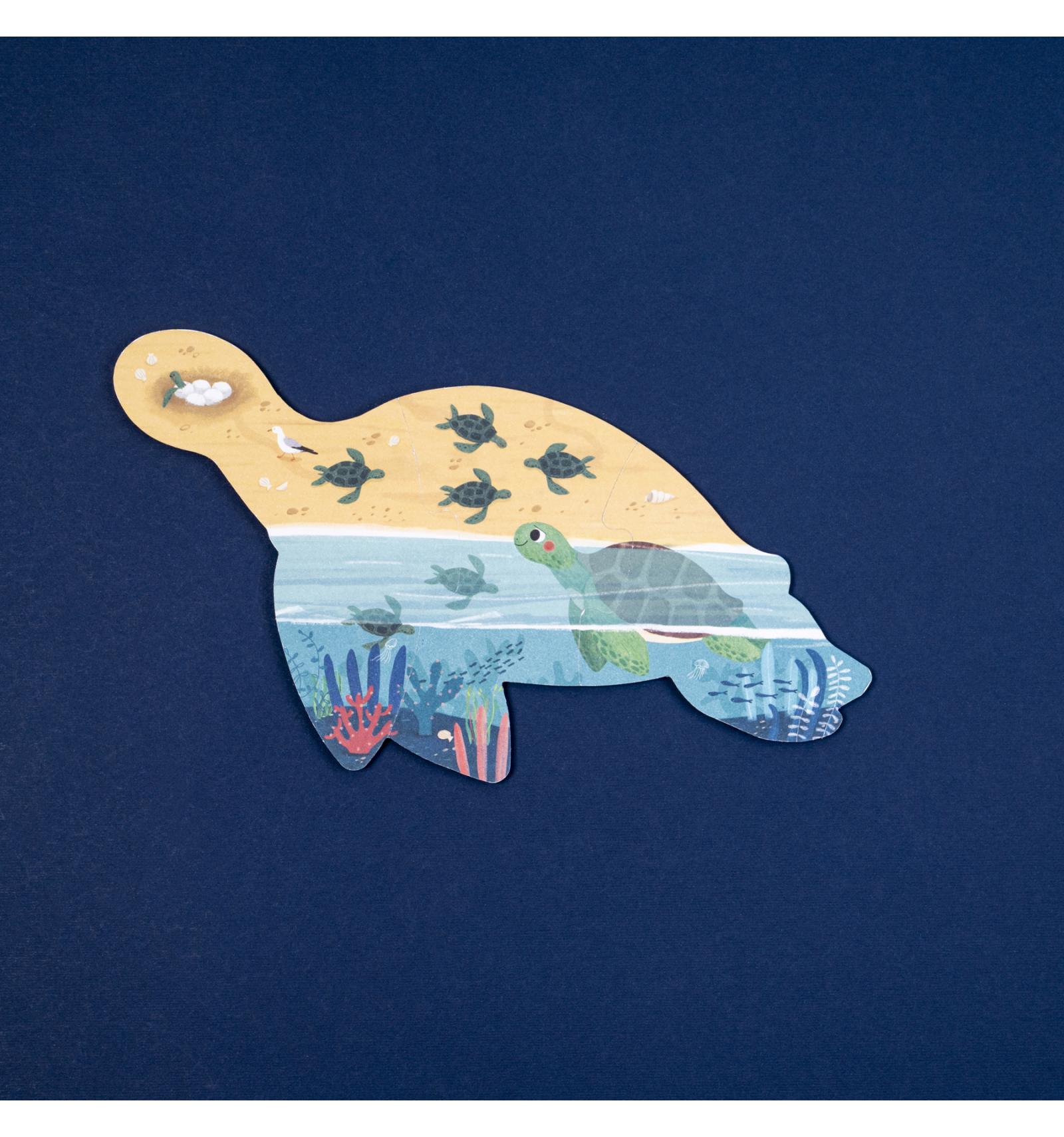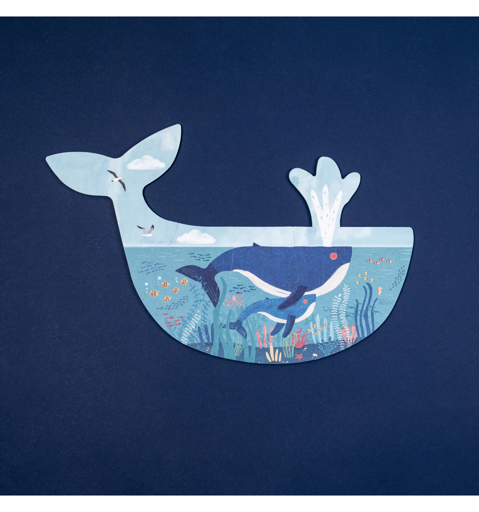 Puzzle Blue de Londji invita a sumergirse en el fondo del mar a través de un juego tranquilo, colorido y educativo. Entre olas suaves y un universo submarino mágico, los niños y niñas conocerán a la estrella de mar, el caballito de mar, el delfín, el tiburón, el pez payaso y la gran ballena.