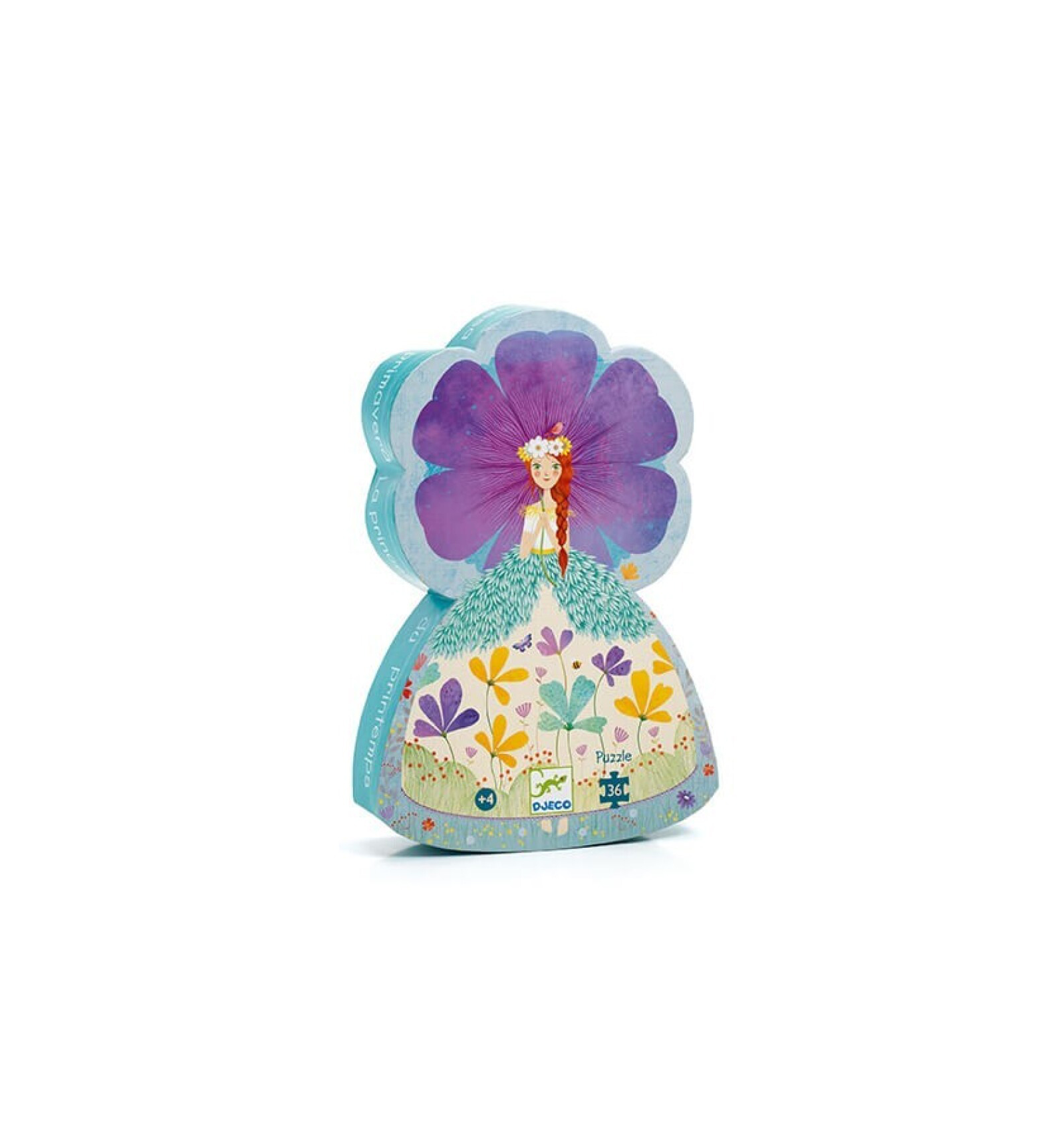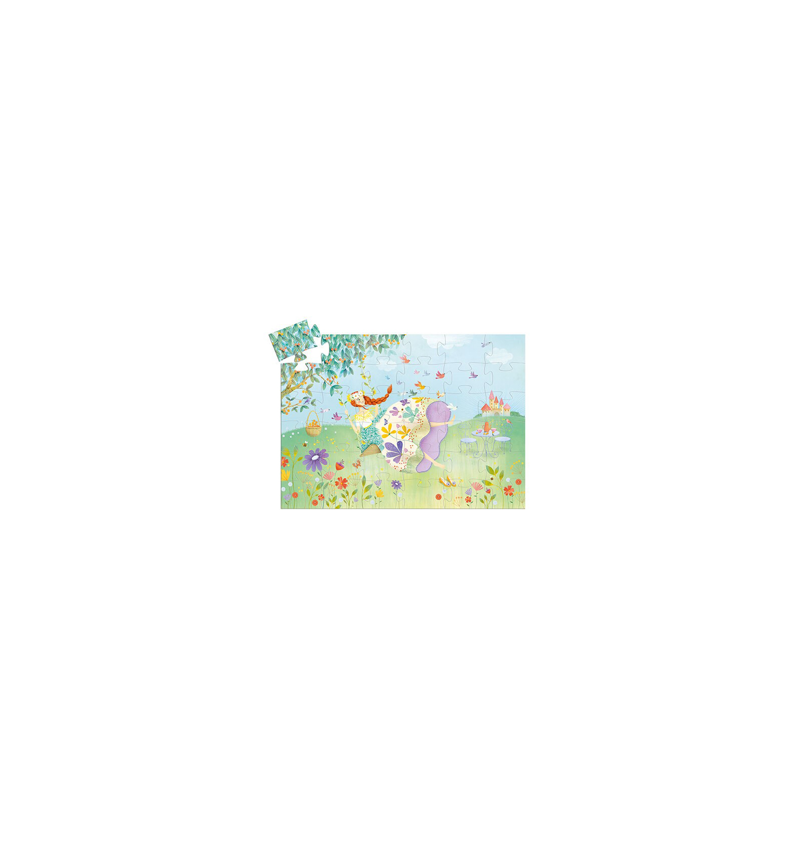 Puzle de 36 piezas con una delicada ilustración de una princesa disfrutando de la primavera. Piezas grandes y resistentes, fáciles de manipular, presentado en una bonita caja con forma decorativa.
