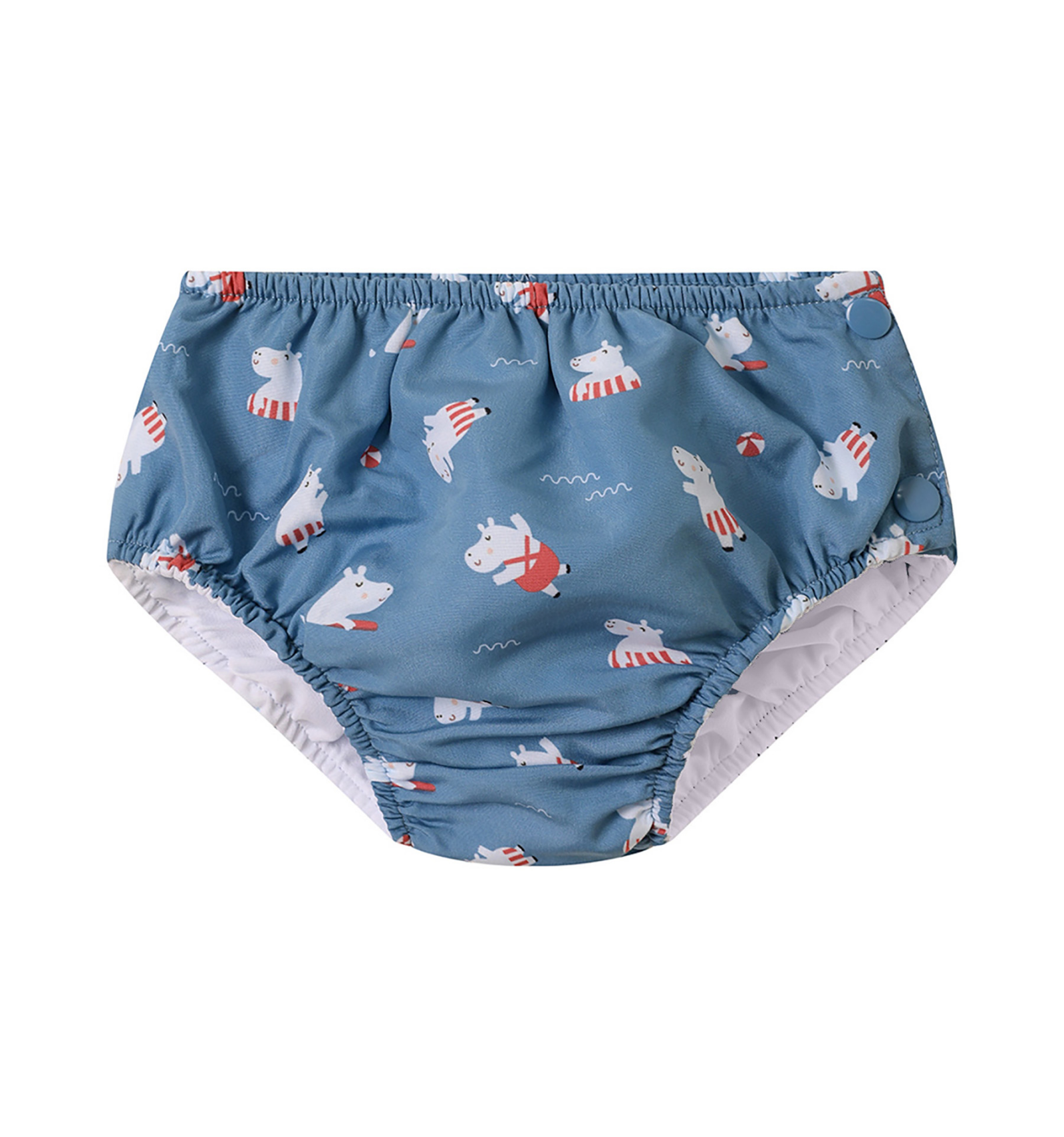 Gracias a su cierre a presión en los laterales, este bañador pañal facilita el cambio rápido y cómodo.