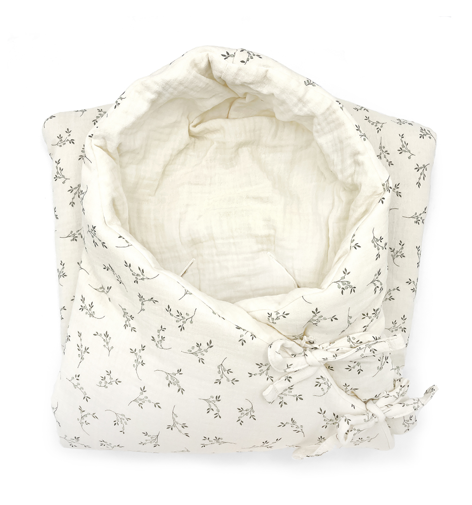¡Dulce saquito de entretiempo para bebés! Diseñado para capazos y cochecitos. Interior de punto de algodón ultra suave y exterior doble gasa de algodón 100%. Ideal para los meses de primavera y noches de verano. Cierre con lacitos y cremallera inferior.