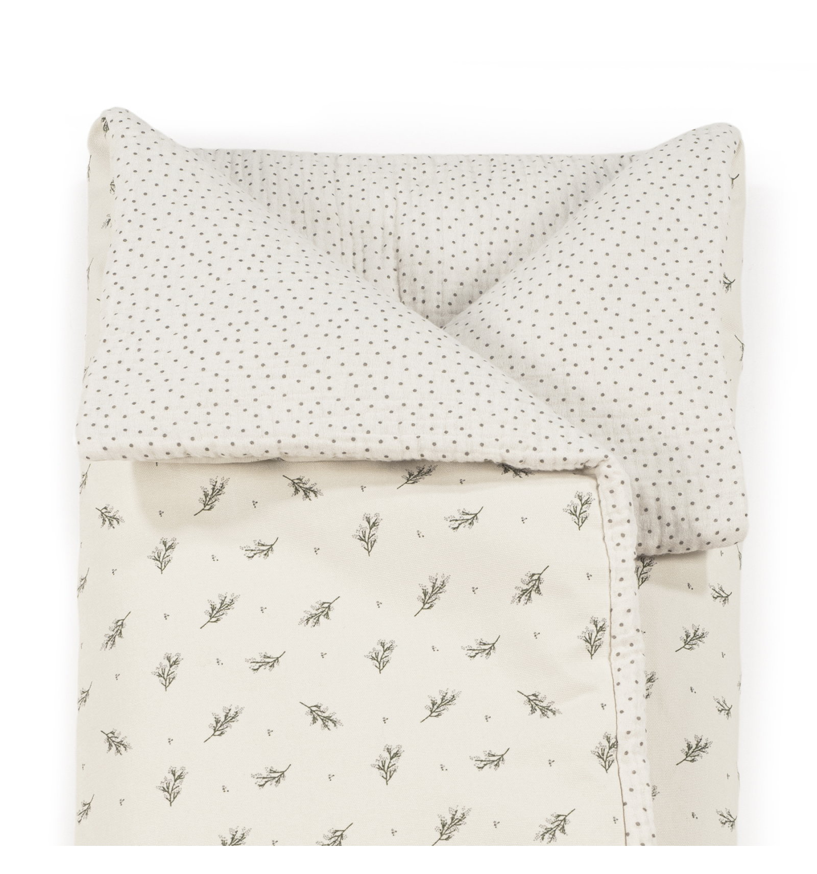 Su diseño versátil lo convierte en un accesorio multifunción: úsalo como saco para los paseos en capazo o como manta para la cuna. Dispone de un práctico cierre tipo sobre con velcros y cremallera inferior para cubrir los pies, garantizando que el bebé se mantenga siempre arropado y protegido.