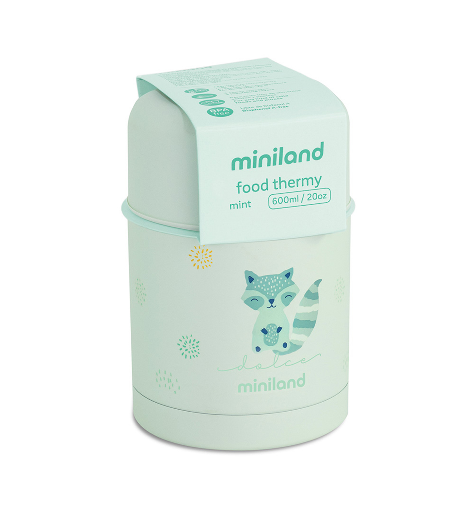 El termo de comida Food Thermy Mint, con capacidad de 600ml, es perfecto para los bebés más comilones y viajeros. Fabricado en acero inoxidable de alta calidad, mantiene la temperatura durante horas y cuenta con válvula de seguridad para evitar derrames. Ideal para transportar todo tipo de alimentos sólidos, libre de BPA y fácil de abrir.