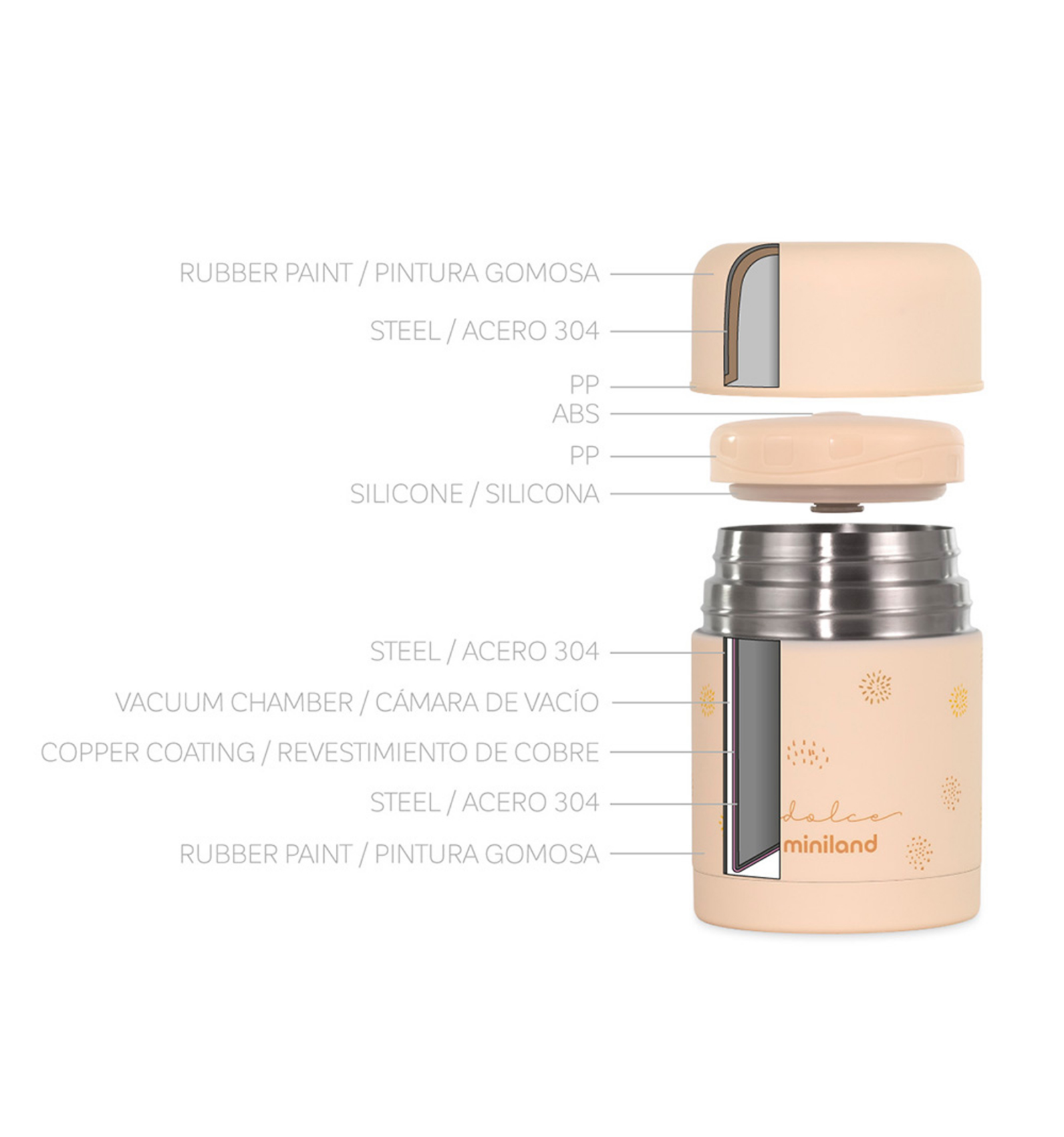 Modo de uso: Llena el termo con la comida del bebé. Utiliza la válvula de seguridad para abrirlo fácilmente y sirve la comida directamente desde el recipiente.