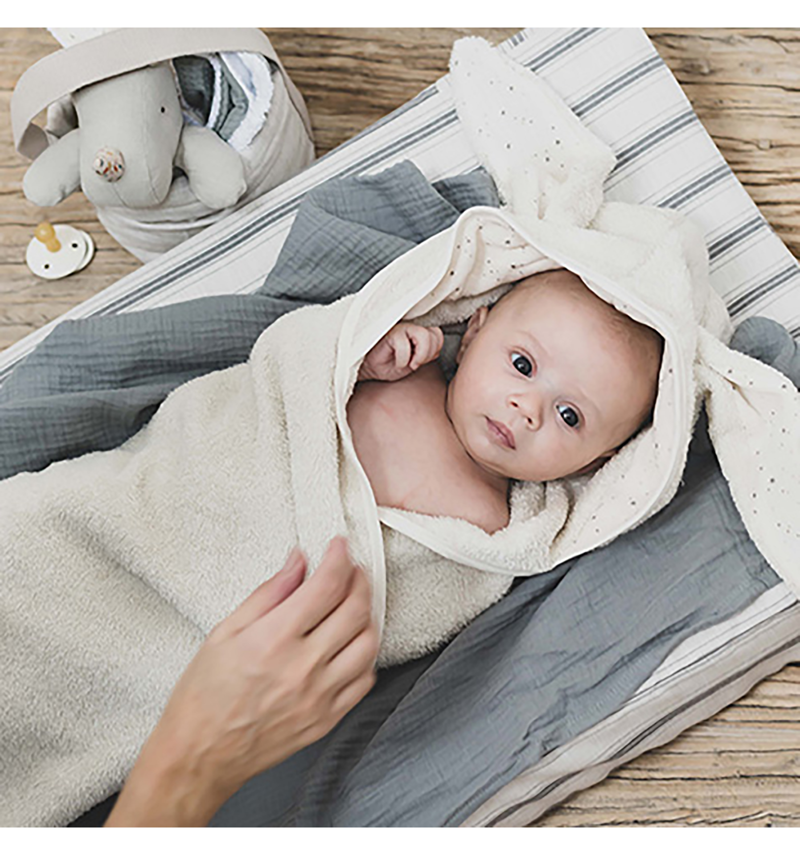 No podrás resistir comerte a besos a tu bebé cuando al salir de la bañera lo cubras con la capa de baño Bunny de BabyShower.