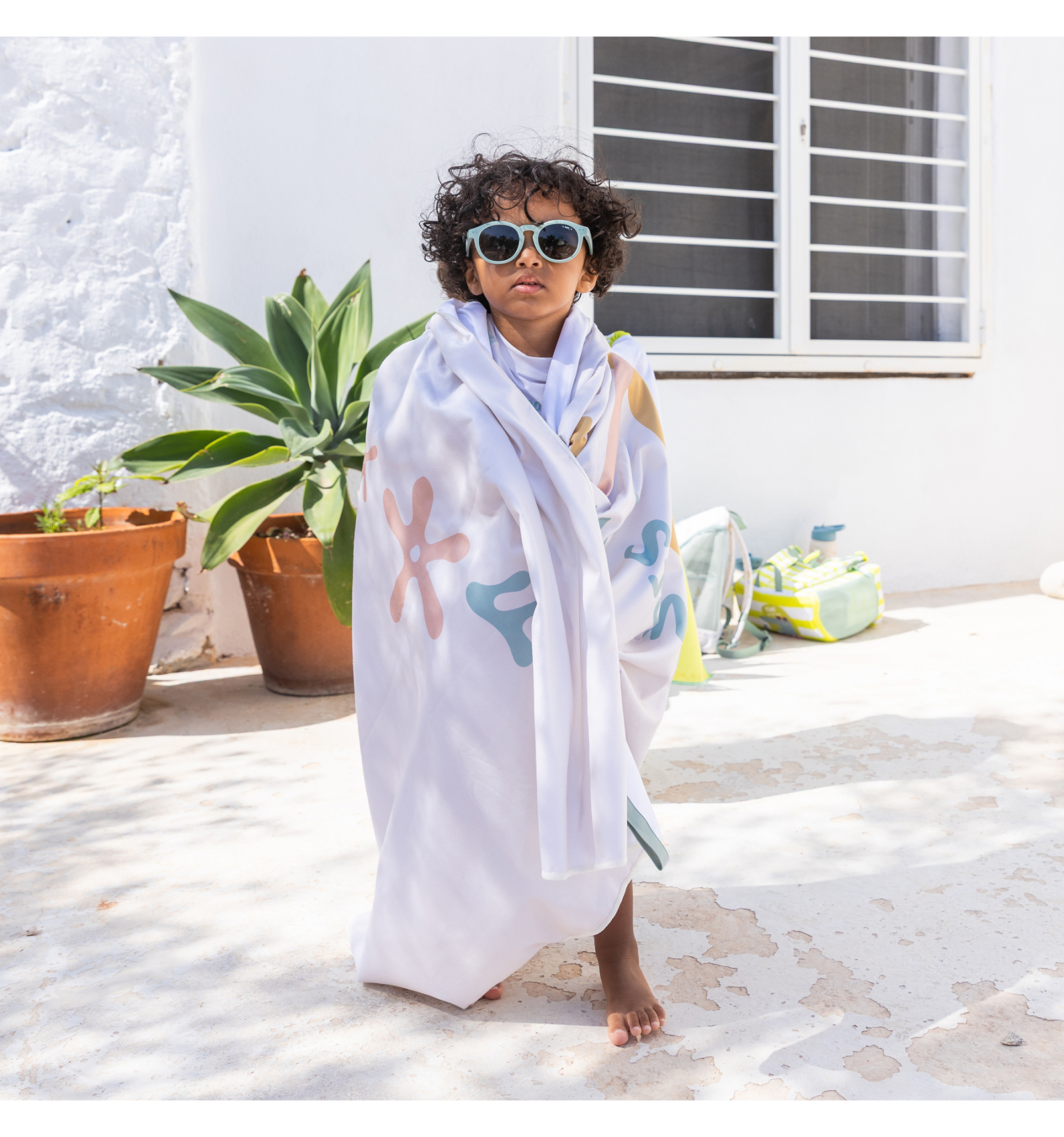 Disfruta del verano con esta toalla de microfibra de Saro, diseñada para acompañar a tu peque en sus días de playa y piscina. Su tejido suave y ligero proporciona una sensación agradable al contacto con la piel, garantizando el máximo confort tras cada baño.