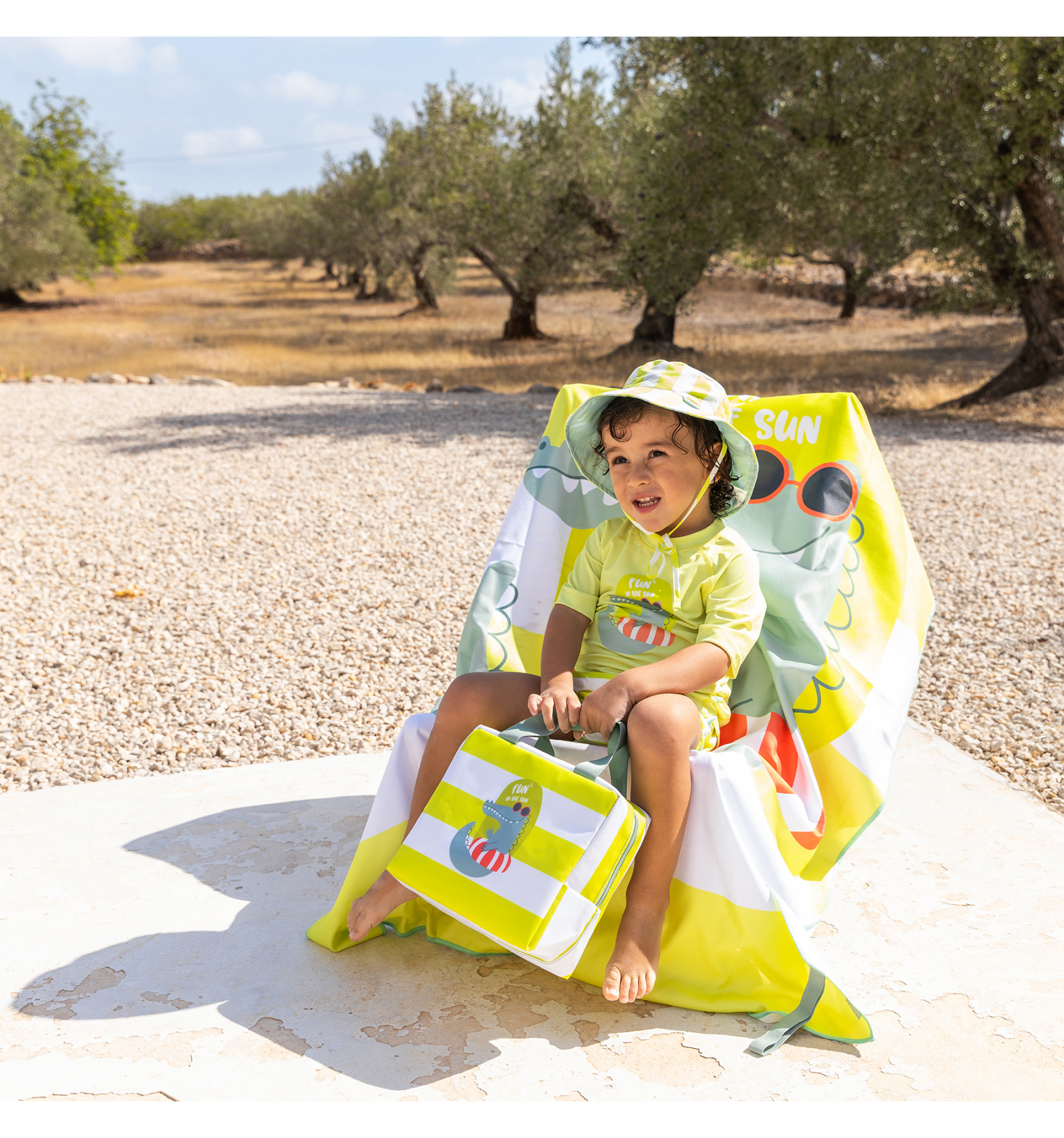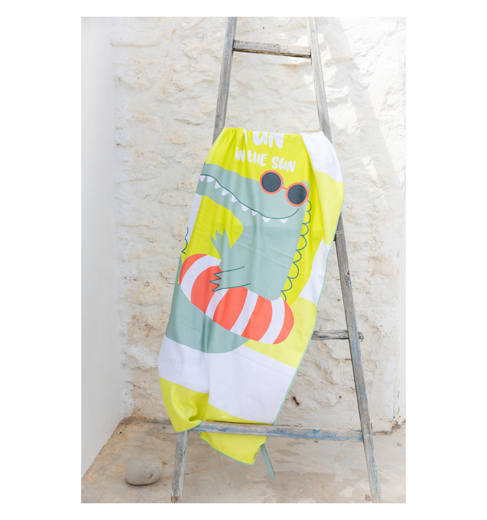 Disfruta del verano con esta toalla de microfibra de Saro, diseñada para acompañar a tu peque en sus días de playa y piscina. Su tejido suave y ligero proporciona una sensación agradable al contacto con la piel, garantizando el máximo confort tras cada baño.