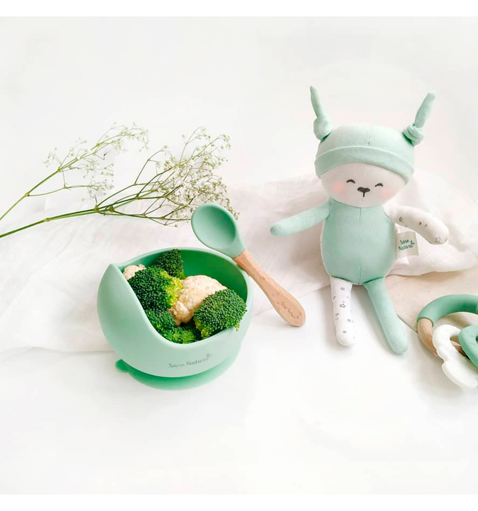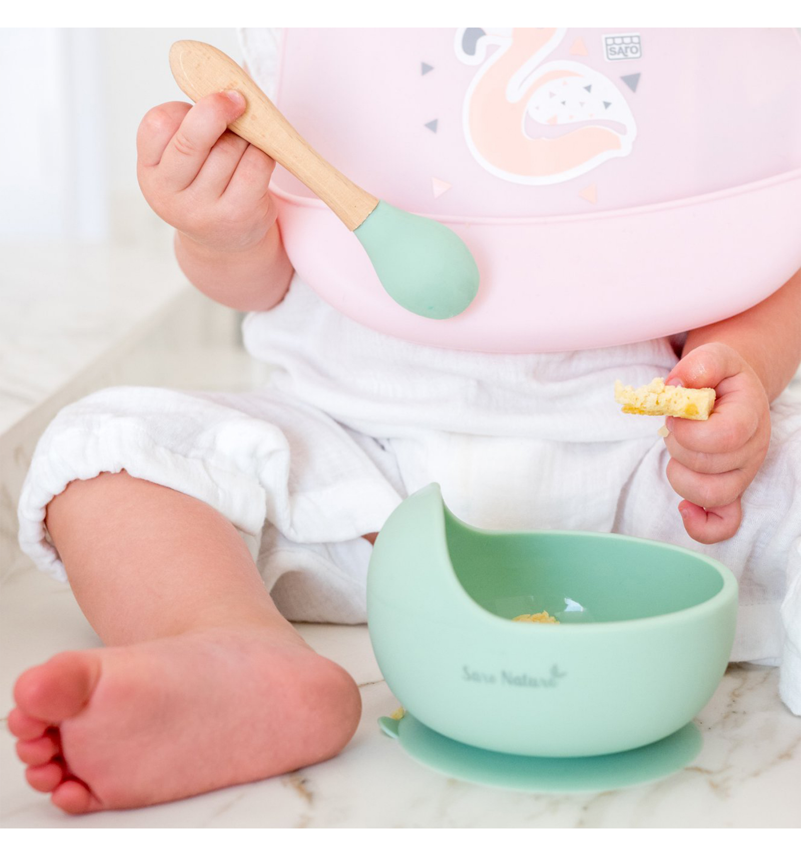 Bol y Cuchara Saro Nature "Wave" Silicona Menta Mist Ampliar
