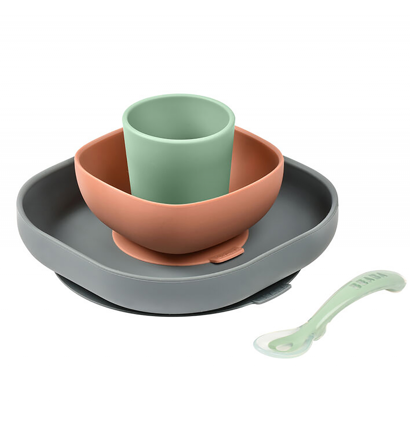 Deja que tus hijos coman solos sin peligro de que vuelen platos y se rompan con la vajilla de silicona con ventosa de Béaba que se adhiere a las superficies lisas, reduciendo incidentes y ruido durante las comidas.