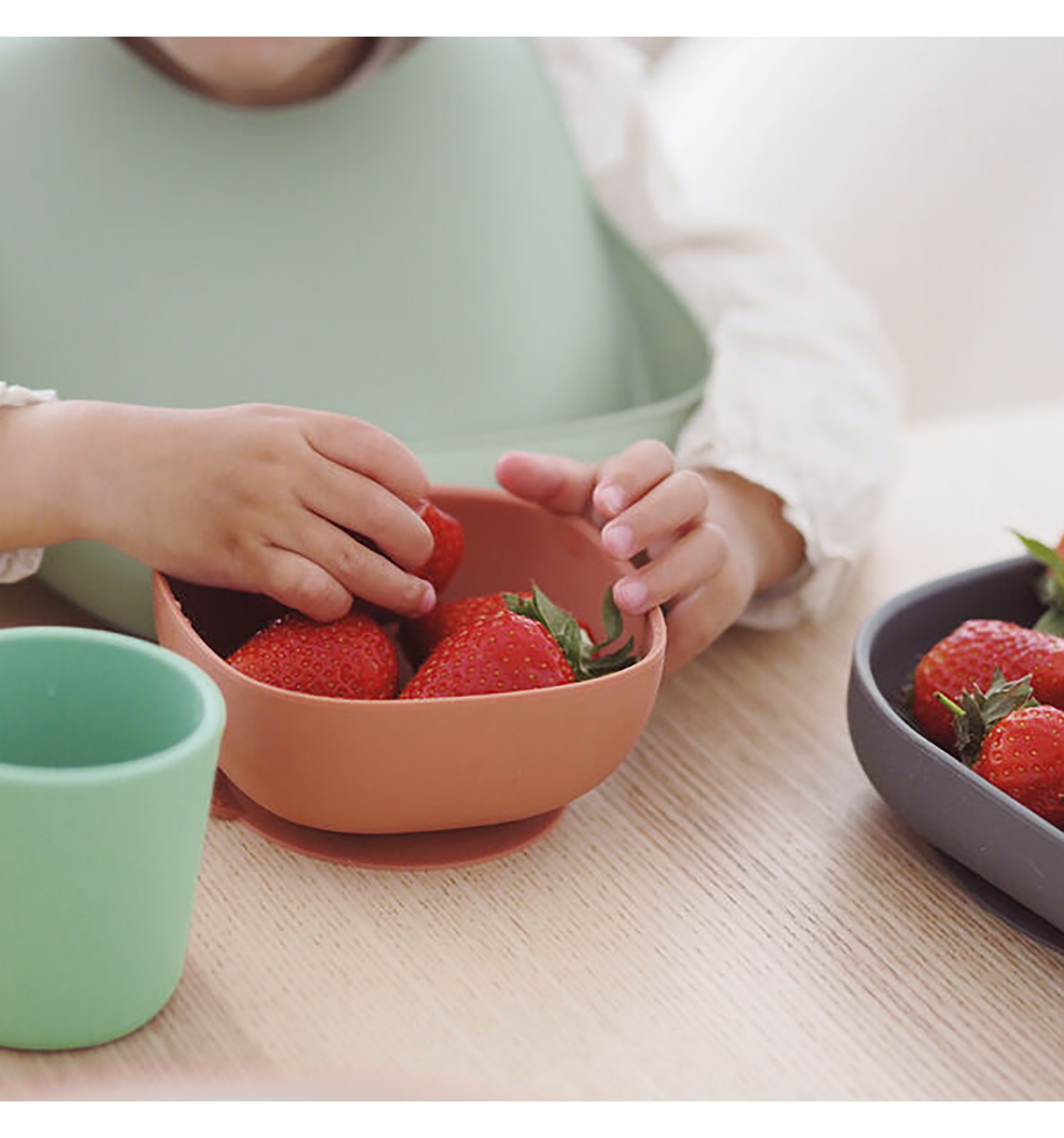 Las formas ergonómicas ayudan al bebé a comer solo; con esquinas redondeadas y bordes rectos para facilitar la sujeción de alimentos.