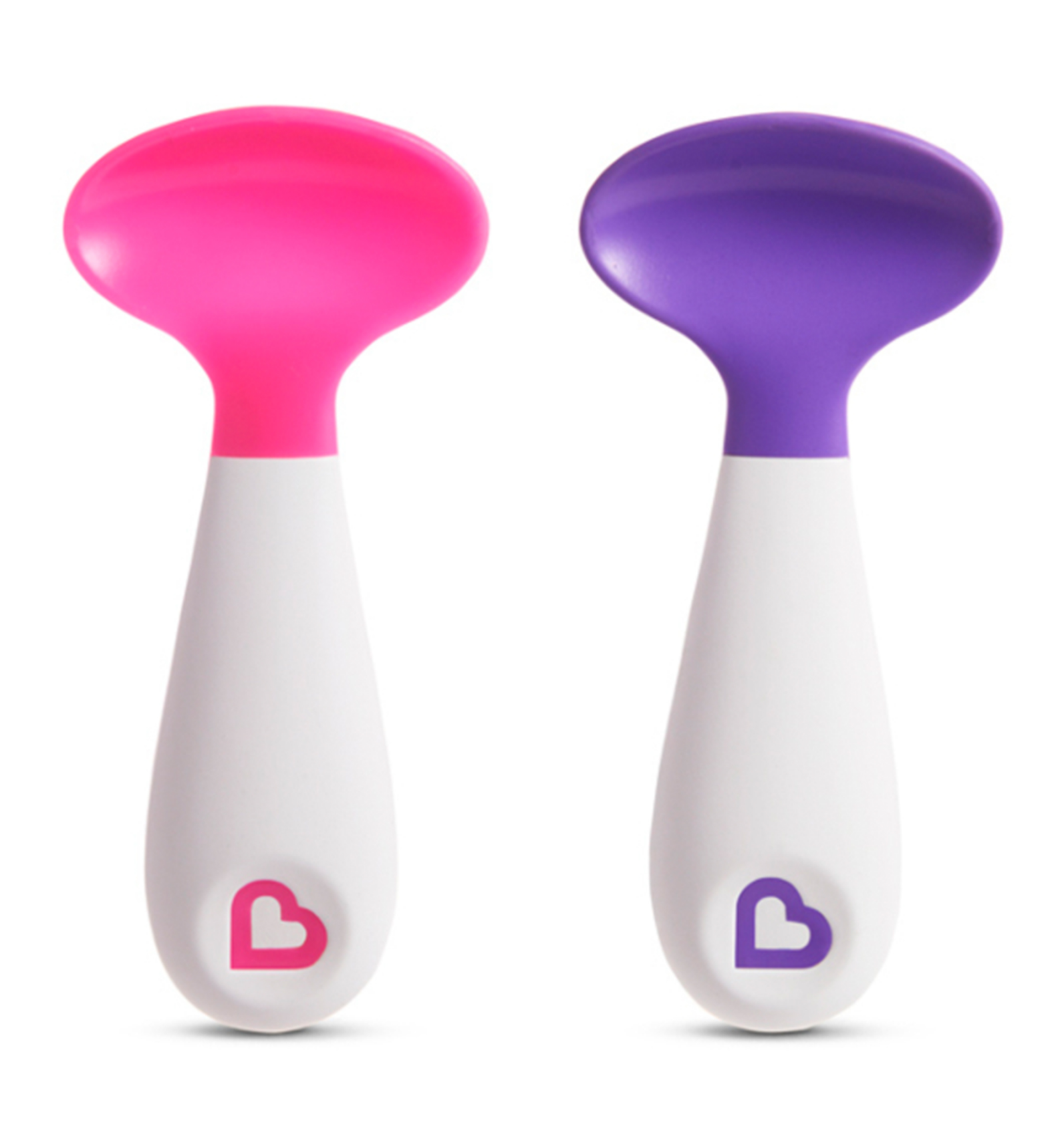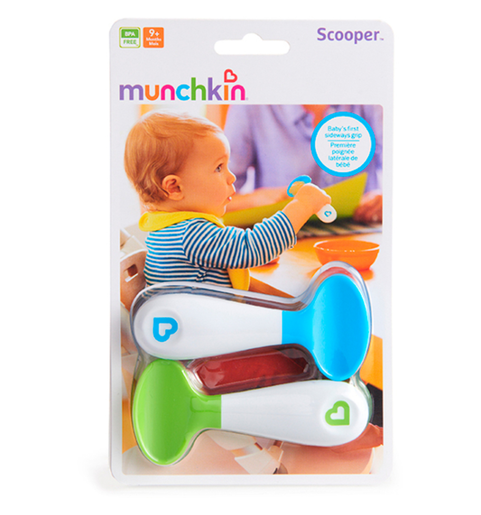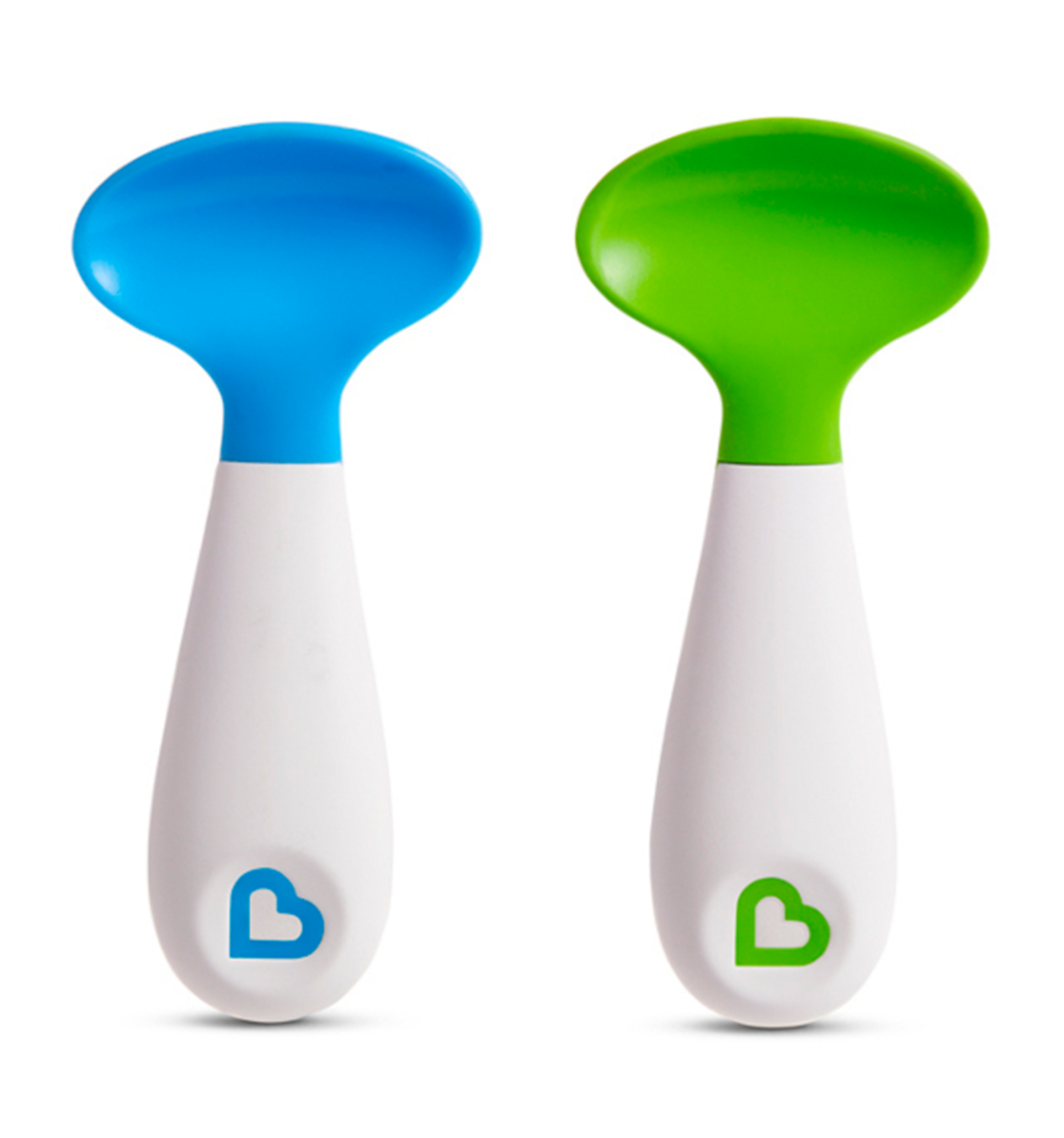 Cuchara pala de Munchkin, diseñada para seguir el instinto natural del bebé a la hora de comenzar a comer solito. Permite coger el mango tanto con la derecha como con la izquierda y comer de lado. Al tener bastante profundidad, permite que llegue más comida a la boca.
