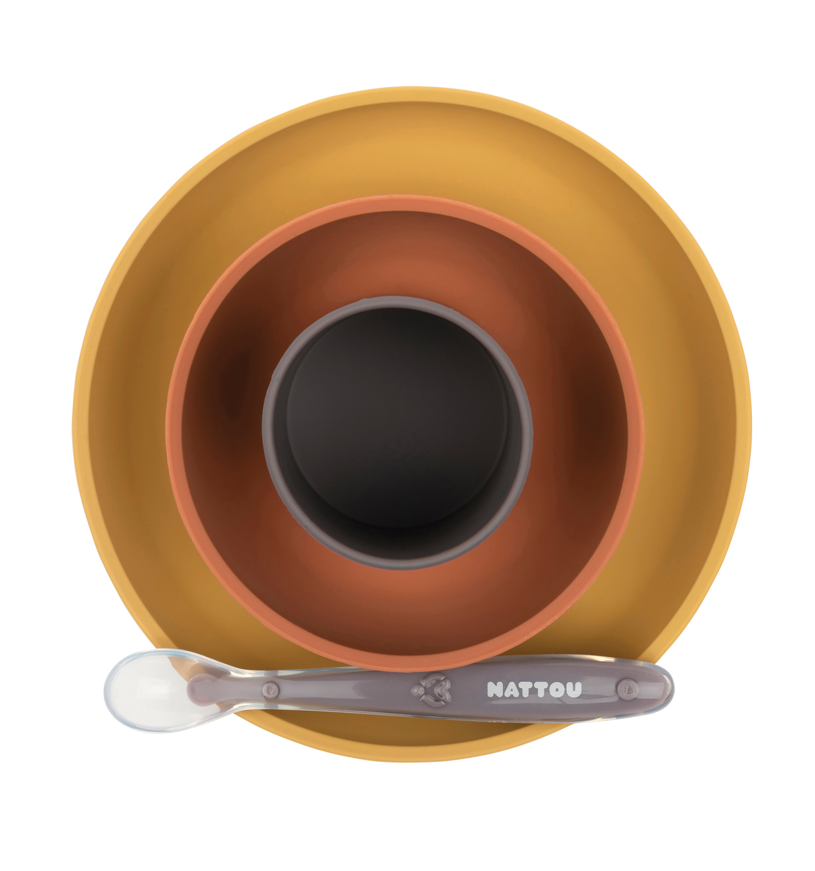 El set de vajilla de silicona de 4 piezas de Nattou incluye plato, bol, vaso y cuchara con base de succión. Perfecto para que los pequeños aprendan a comer de manera independiente sin derrames. Silicona suave, libre de BPA, apta para microondas y lavavajillas.