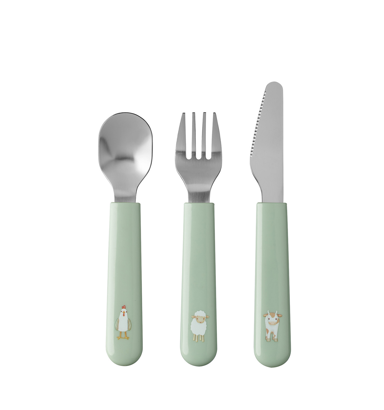 Este set de cubiertos está especialmente diseñado para niños pequeños y preescolares de 2 a 3 años, acompañándolos en su aprendizaje durante las comidas. Fabricados en acero inoxidable, son resistentes y seguros, mientras que sus mangos de plástico ergonómico permiten un agarre cómodo y fácil para las manos pequeñas.