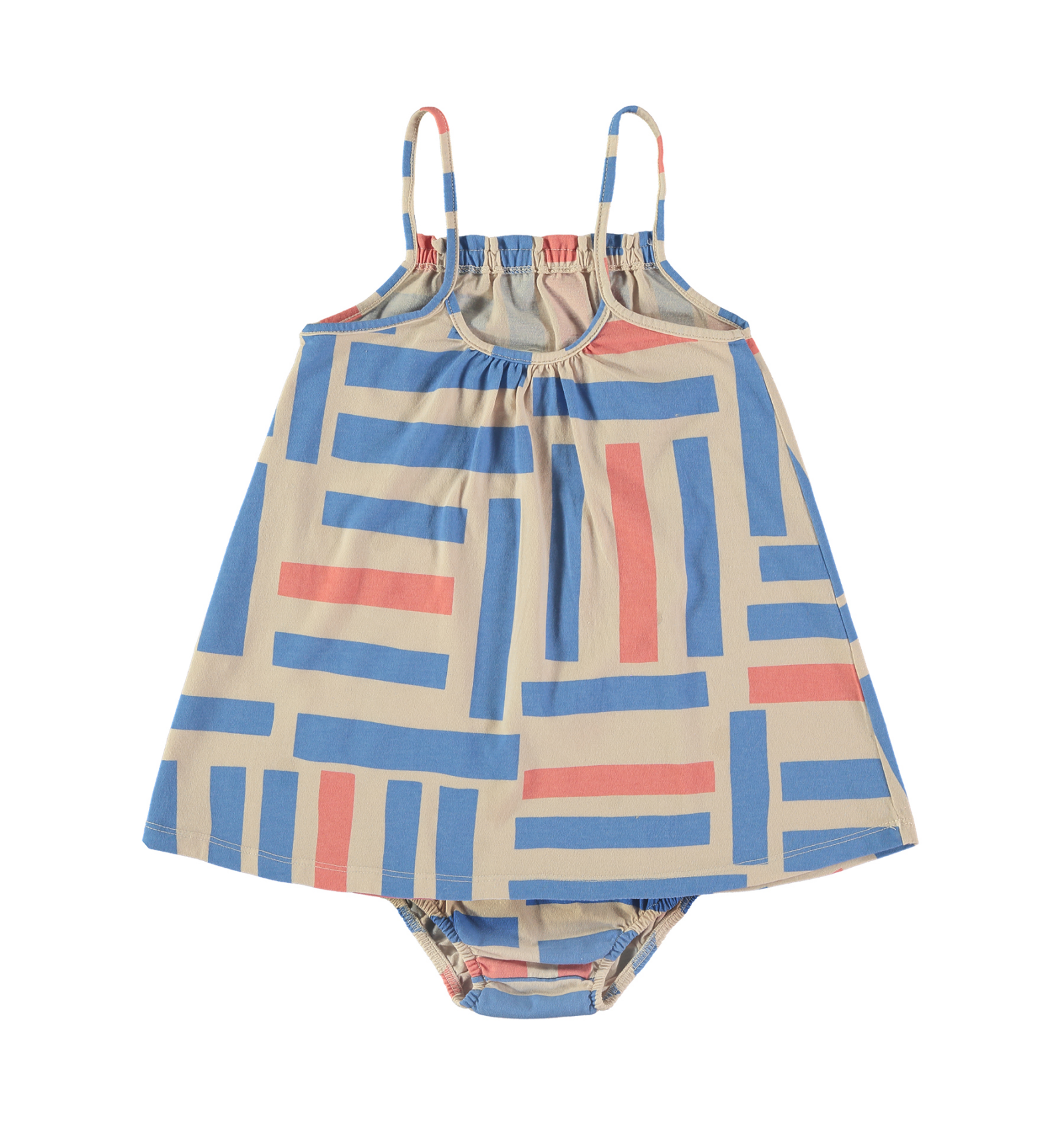 Vestido con culotte Babyclic en punto liso 100% algodón orgánico. Diseño cómodo con goma en la pechera y espalda para un ajuste perfecto. Culotte con cinturilla y bajos elásticos. Tintado después de la confección, lo que le da un acabado único.